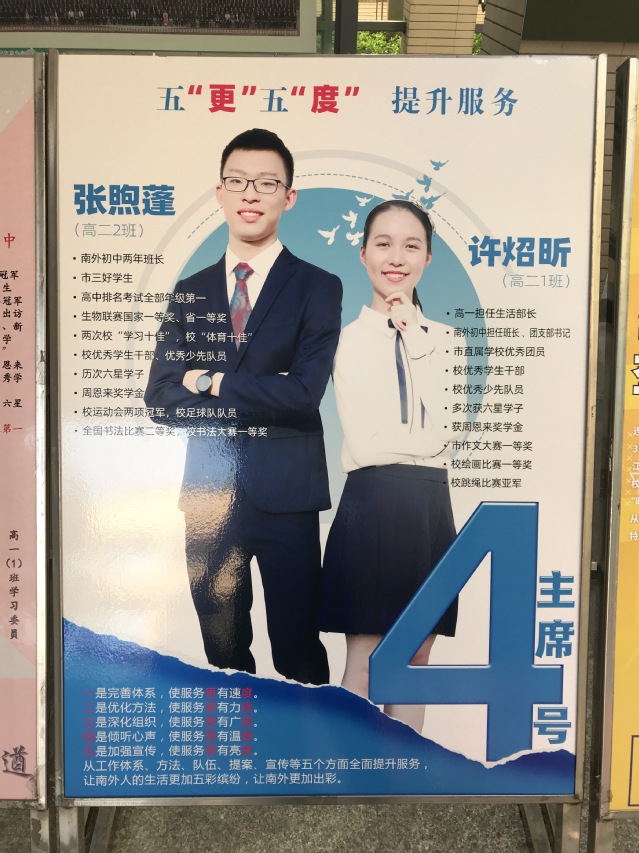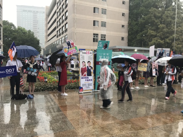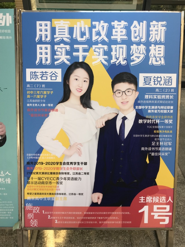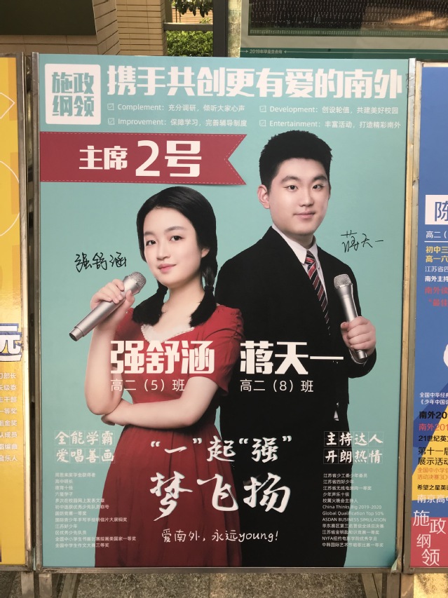 每天6:50左右,候选人们按照抽签顺序在校门口有序站好,高声向进校同学宣传自己,此起彼伏的呐喊声,饱含南外学子的青春与活力。