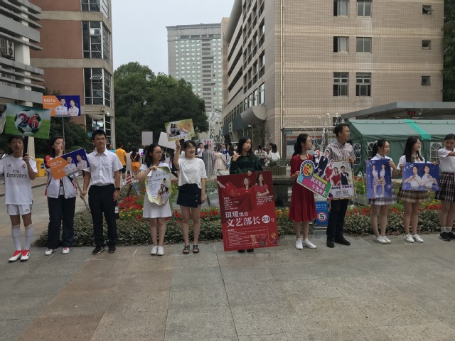 9月16日中午于主席台处进行了文艺部长PK。候选人们通过歌舞表演,表达对祖国的祝福以及抗疫英雄的感激,展现个人的文艺特长。