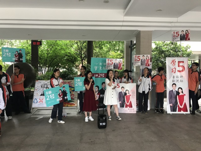宣传周期间,候选人们还申报了其他宣传活动。主席台、旋转楼梯、A楼大厅等处,动感的舞蹈串烧,新潮的说唱表演,赚足了大家的好奇心,也从更多角度展现了候选人们的多元能力。