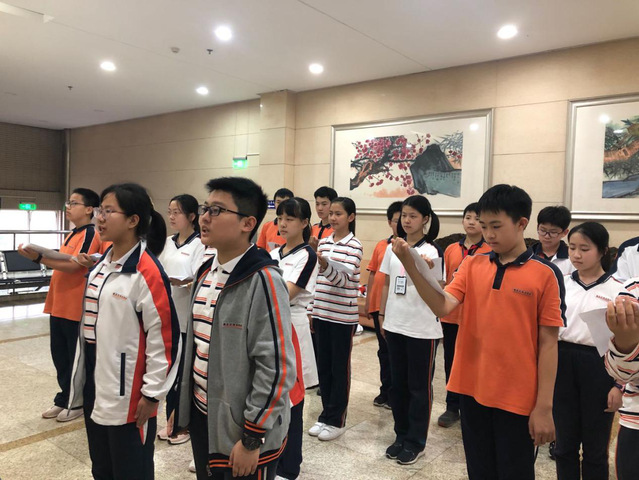 从入选到排演,只有一周时间,大伙们课前课后忘我地投入训练。指导老师赵思达老师一句句地指点我们诵读时的情感、节奏、重音,年级组老师在训练中不时地为我们送上一个微笑、鼓励。一回回改进、一次次磨合,只为做到更好,只愿能更真切、更动情地表达出我们的心声。