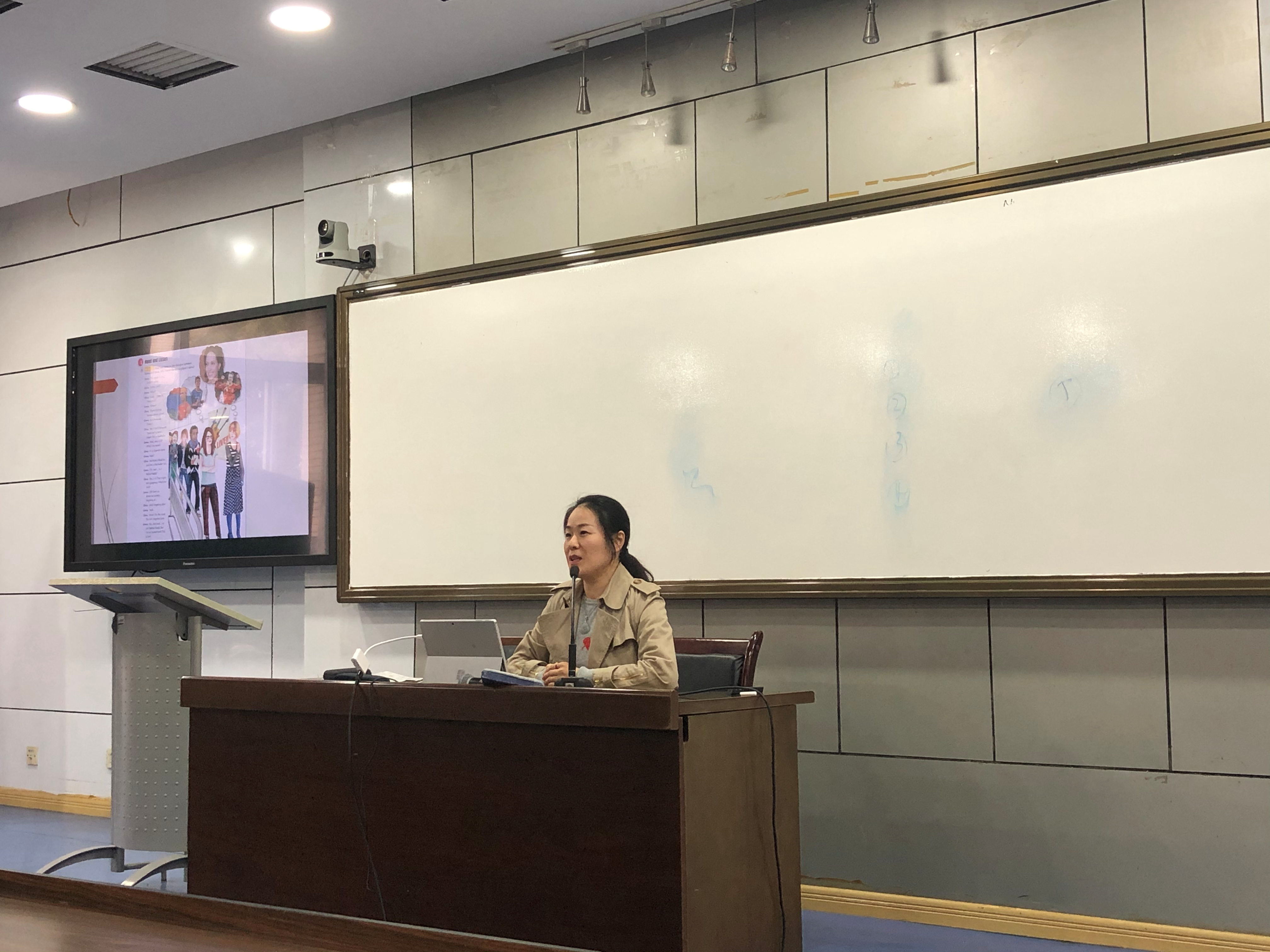 两节研讨课后,胡娟老师做了《立德树人理念在初中英语教学中的渗透》的主题讲座。胡老师引用了程晓堂“各学科的课程都要为发展学生的核心素养服务,都要结合学科内容帮助学生形成关键能力和必备品格”的观点,教育应体现以人为本的教育思想和回归教育“育人”的本质。根据《英语课程标准》对“教师要认识到学生对主题语境和语篇理解的深度,直接影响学生的思维发展水平和语言学习成效。英语课堂应该把对主题意义的探究视为教与学的核心任务,并以此整合学习内容,引领学生语言能力、文化意识、思维品质和学习能力的融合发展。”教师如何结合理论在课堂讨论中结合学生的已有知识储备和自身学习生活经验,引导学生深入探究,了解各种文化里不同情境中人与人之间,人与自然,人与社会的关系。教师以《剑桥新思维英语》青少版预备级为例,列举了几个具体范例,讲述学生认识世界,实际能力与品格在课堂讨论里得到提升。