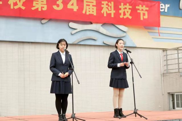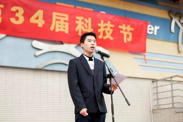 这次晨会的主题是“星耀苍穹创新中国”,今天是南外第34届科技节开幕式。