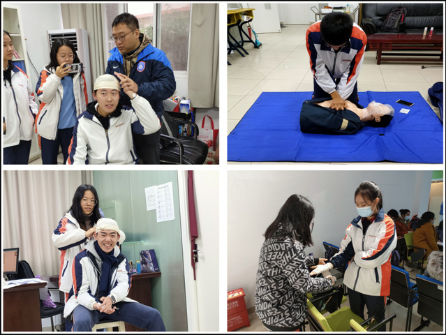 现在还可以追溯回几周前飞奔下楼跑去年级组报名救护比赛那天。从那天起,每天课余时间都泡在医护室。从手部包扎,头部包扎到心肺复苏,医务室的老师们和往届参赛的学长们都很负责严谨地指导我们练习。每天医护室里的欢声笑语,放学后与心肺复苏模拟人安妮的“约会”,还有比赛那天场地里有些耀眼的光,都会成为属于我珍视的回忆。急救技术是危急时刻黑暗中的希望,当危险到来时,我希望能用我的能力去帮助他人,坚定学习急救的初心。感谢老师、学长和我的队友们,也衷心希望今后参赛的队员们可以秉承急救精神,取得更加优秀的成绩!