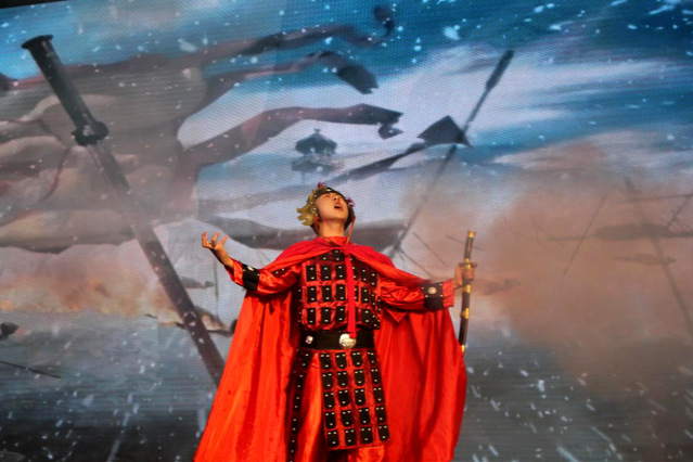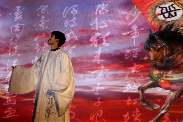 执戈,策马。驰骋沙场,精忠报国,立民族脊梁 。