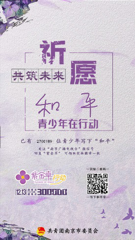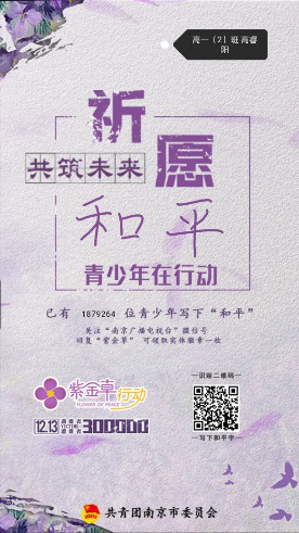 五、网上纪念表达和平祈愿。同学们积极参加青春南京微信平台推出的“祈愿和平、共筑未来”公祭活动,并在青春南京公众号、微博等平台跟帖、留言,表达对和平的期许和对未来的展望。