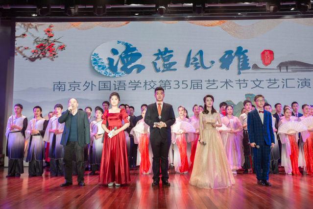 在这个过程当中,最令我动容的其实不是我自己的努力与坚持,而是老师们对我们的引导和帮助。在串词准备阶段,尹荷蓉老师和王少林老师加班加点地帮助我们修改完善,真正做到字字推敲、句句斟酌。冬天的金陵寒风沁骨、暮色早合,老师们却牺牲了陪伴家人的时间来帮我们排练,并根据我们四个人不同的身形气质,反复、精心地为我们挑选服装。在我们登台汇演的前一天,南京刚刚下了一场雪,化雪的天气可称得上是风刀霜剑。但尹老师还是站在后台一遍遍地为我们加油打气。怕我在候场时冷到,她还把自己脖子上的围巾摘下来亲自给我围上。在南外的这几年,虽然我早已无数次地感受到了师恩深重、蜡炬无言,但这一次老师们的温暖和用心,还是深深地打动了我,让我永远感怀,永远铭记。