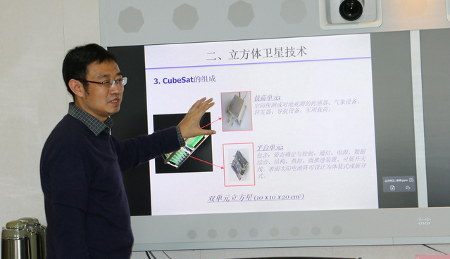 朱征副校长首先致欢迎词。随后,张翔博士为老师们科普了人造地球卫星和立方体卫星的相关知识。在谈及立方体卫星技术时,张博士强调它是一种不断探索新的科学功能与应用场景的技术,与南外STEM+的课程理念一样,都需要通过多学科交叉融合来实现。