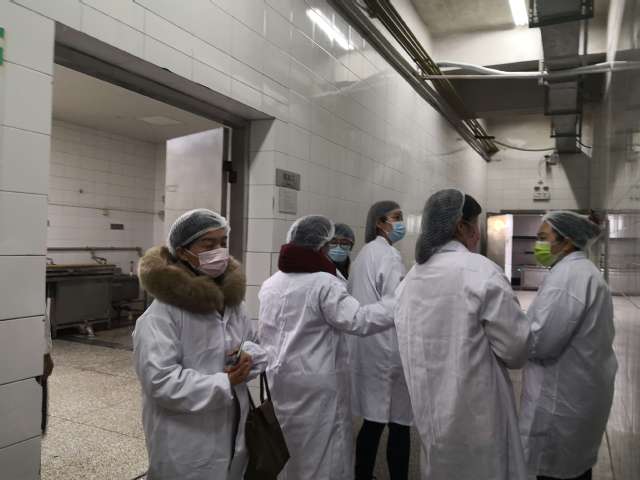 总务处钟主任带领家委会代表参观了食堂后厨操作间、储藏间,了解了学生午餐制作和准备情况。中午学生会生活部长、初高中学生代表和教师代表一起参与,对学校食堂学生餐的品类、口味等做了讨论交流反馈。