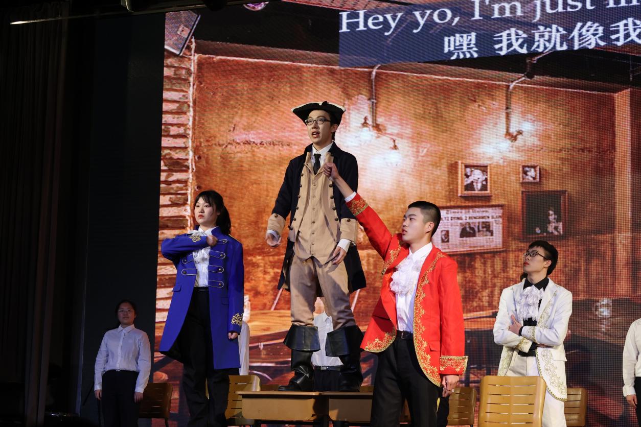 高二(2)班带来音乐剧Hamilton的另一部分节选My Shot,与5班所演绎的片段合璧,让高二年级的同学们再一次欣赏了这一音乐剧。