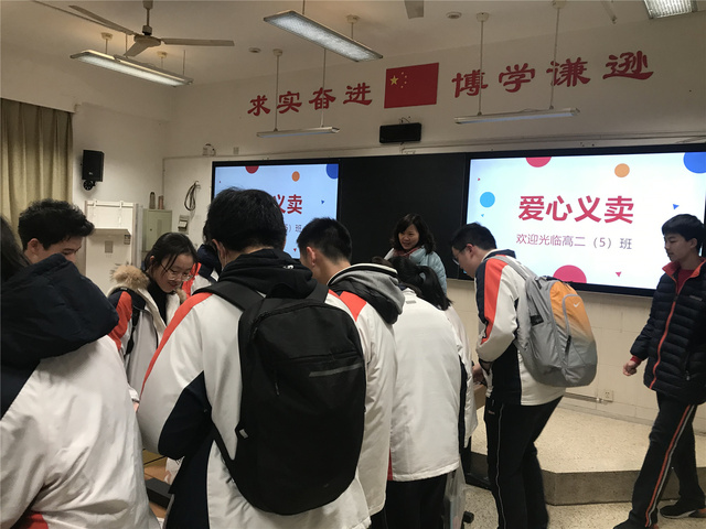 穿梭在各个班级之间,便能感受到同学们火一般的激情——各式各样的叫卖声、还价声、笑声不绝于耳。每个班售卖的物品各不相同,促销的方式也是大相径庭,有的班级以便宜的价格获得优势,有的班级以特色的海报取胜,更有甚者开动脑筋,使用转盘抽奖来吸引客源、提高销售额。不过,不论是以什么样的方式进行售卖,同学们献出爱心的迫切渴望总都是相同的。