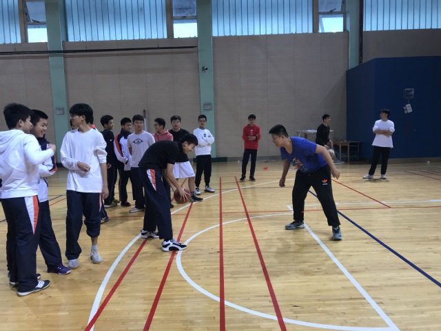 同时,在校园另一边的体育馆里,本次爱心义卖的一项特色活动——慈善篮球挑战赛也如火如荼地进行着。每买一个纪念款校园篮球钥匙扣,将获得挑战校队篮球运动员的机会,还可以与自己的篮球偶像合影!