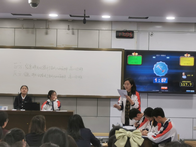 信息碎片化提升还是降低了当代人的认知水平,高一(5)班代表队与高一(3)班代表队以身处信息时代浪潮的青年人身份,对这一话题进行了深入的探讨。双方辩友针尖对麦芒,巧舌如簧,干脆的破题、清晰的论证,无一不展现出南外学子过人的语言和思维能力。