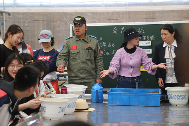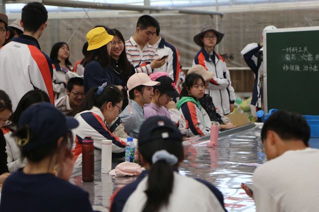 时代在进步,农业技术也在与时俱进。走进温室大棚,同学们也体验到了现代农业的迅速发展。基地老师介绍了玻璃温室的保温、降温设施,从君子兰到无尽夏,各具特色的植物品种让大家目不暇接。同学们学习扦插了菊花和碰碰香,亲手种植了黄杨,还给梨树施了肥。在点点绿意和片片花香中,同学们赞叹于生命的奇妙,更强化了保护大自然的环境意识。
