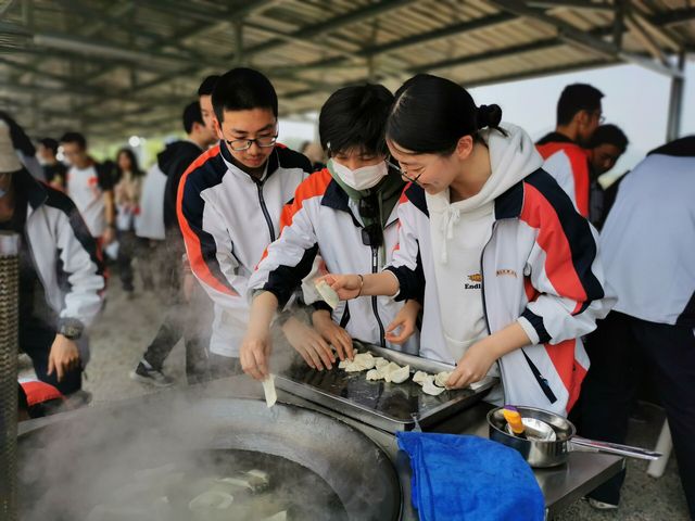 中午,同学们进行了一次难忘的野炊。各班同学大显身手,包饺子、煮饺子充分展现了团结协作的精神。大家心灵手巧,发明出各式各样的“花式”饺子,现学现卖,自己动手生火。当大家围坐一桌时,终于体会到了爸爸妈妈每天烧好一顿饭的不易。