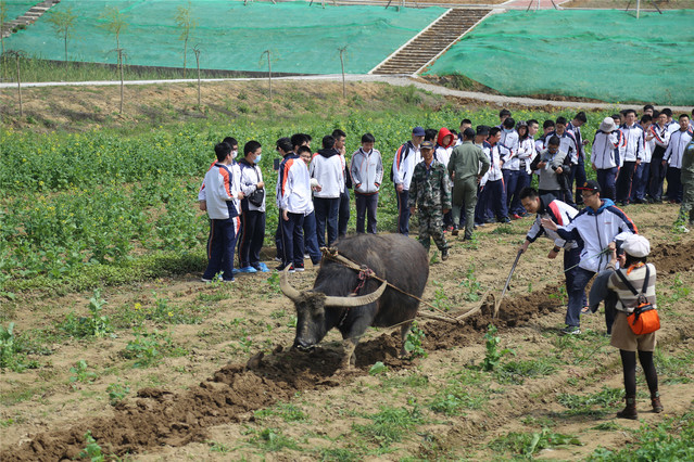 如火的骄阳也磨灭不了同学们坚强的意志。同学们感受了传统牛耕,尝试了播种、犁地、磨豆浆。在这里,水车和田垄不再是历史、地理课本上的一幅插图,大家都做了一回“小农民”,切身体会到了“锄禾日当午,汗滴禾下土”的辛劳。“一粥一饭,来之不易”,用餐时同学们也更能懂得珍惜粮食、感恩生活。晚间,大家欣赏了治愈电影《送你一朵小红花》,在感动和满足中进入了梦乡。