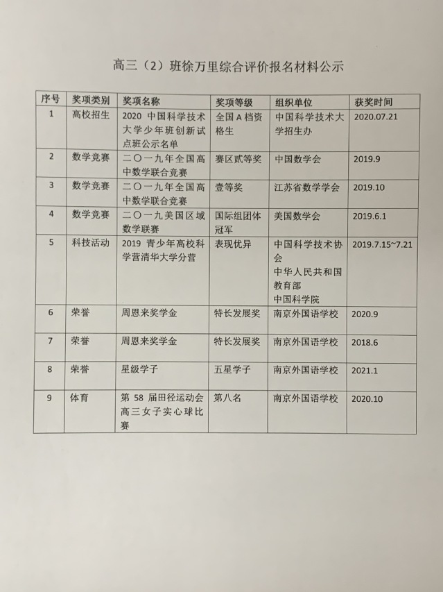 3.经本人申请,现将综合评价获奖情况申报材料公示如下: