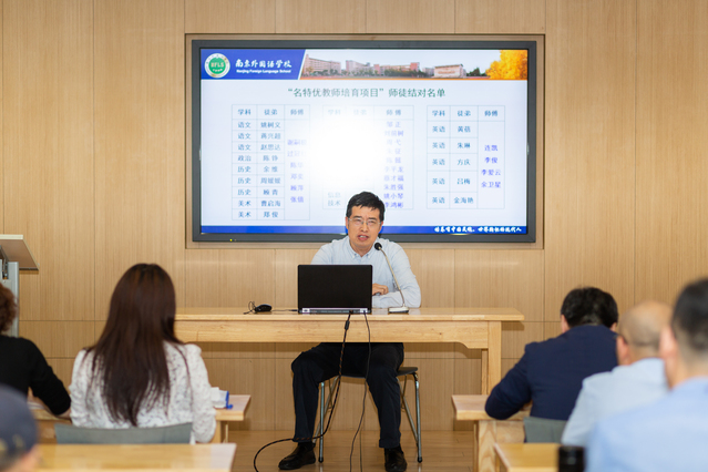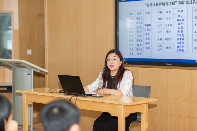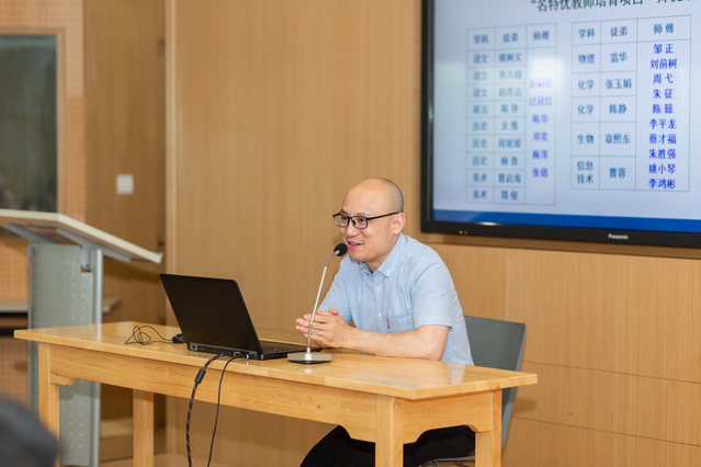 接着,周弋副校长宣读了“名特优教师培育项目”学员名单,充分肯定了本期学员的教科研能力和学术造就,勉励徒弟们和师傅一起努力,在两年内达成既定目标。