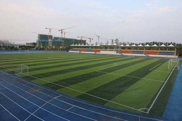 淮安分校的南门走向食堂,再通往体育馆,沿途我们领略到淮安分校美丽的校园景色,同学们尤其对400米的标准操场以及操场上有着醒目色彩的跑道、草坪羡慕不已。