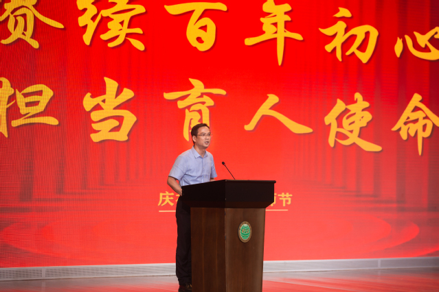 党委书记刘前树代表学校党委、行政,向“从教满30年”的教师们表示崇高的敬意,向受表彰的先进集体和优秀教师们表达热烈的祝贺,向辛勤耕耘、默默奉献的全校广大教师致以节日的祝贺和诚挚的祝福。