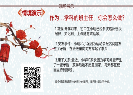 在实例研讨板块,南京市江北新区柳袱小学袁军老师分享了自己作为信息技术老师的班主任之路,讲述班主任工作融合学科的故事。顾青老师则从现代中国对外关系探寻的交友之道,分享了学科教学渗透德育的实践。以上两位老师所做的实例分享为后续探讨话题的展开进行铺垫。顾青老师提出一个值得探讨的问题:全员育人背景下,应如何发挥德育与学科育人的合力?老师们提出了各自的看法,有老师提出:首先要理清楚德育、学科和人三者之间的关系,我们要先关注人,人在学科学习中体现出来的情感、态度。老师对此进行一个引导,这就是学科育人。接下来的现场展示环节,不同学科的班主任针对三个常见案例进行了分析,既体现了班主任的智慧也体现了学科育人的特色。