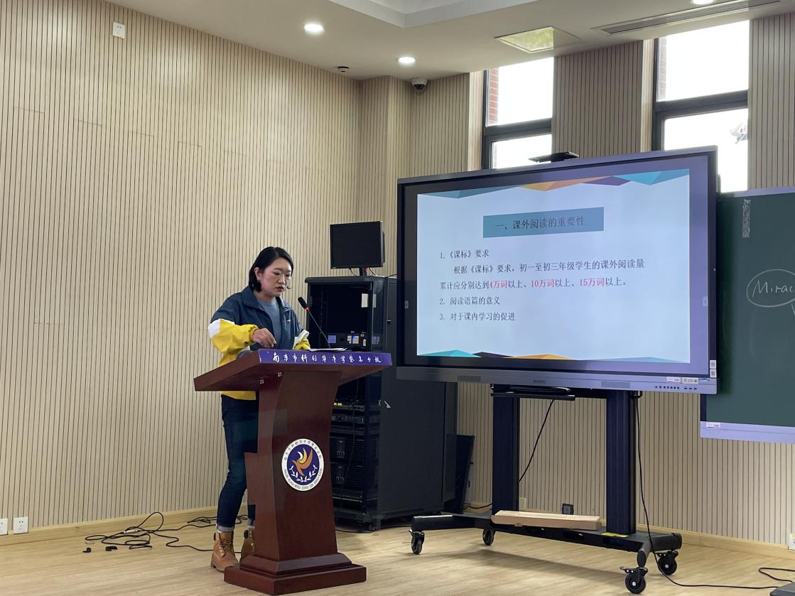 玄武区初中英语教研员黄莺老师进行了总结发言,她表示此次教研活动给老师们带来了英语课外阅读教学的崭新思考,教什么比怎么教更重要。作为英语阅读课堂的补充拓展材料,老师们应当积极开展探索课外阅读教学实践,从而为提高学生的英语阅读能力助力。
