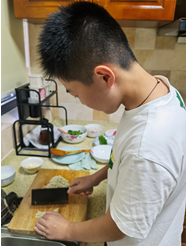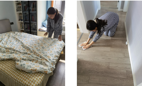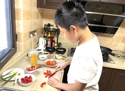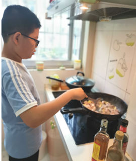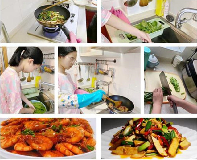 初一同学们参与家务劳动。他们有的利用假期,从买菜摘菜,到斩切烹饪,为长辈做了一顿正餐;还有的进行了家庭大扫除,帮爸妈收纳整理、抹地、打扫厨房,清洗油烟机等。他们不但掌握了劳动技能,也真切体会到家长平时劳动的艰辛和不易,理解了长辈无私的奉献精神,同时懂得了劳动的重要意义和价值。他们撰写了图文并茂的活动体会,意识到“家里的一餐一饭一汤里满满的都是爱”,感恩父母的付出,也加强了身为家庭一员的责任意识。父母都夸赞说,他们长大了。