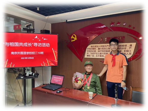 初二同学们开展了“与祖国共成长”寻访活动。他们走进社区,寻访老党员、老战士、老专家,听他们讲述履职敬业、追梦筑梦、接续奋斗的故事;同学们还听家中长辈描绘新中国的巨大变化,感受他们努力奋斗的成果。同学们按小组采访了“寻找真理的人”胡福明、抗美援朝老兵、共和国将军、经历困难时期的长辈等,撰写寻访报告,分享寻访体会,受益匪浅。他们看到了老一辈人艰苦奋斗、默默奉献的精神,也感受到新中国的沧桑巨变——深感如今和平生活的来之不易。同学们决心向老一辈们学习,脚踏实地,坚定自己的理想信念。