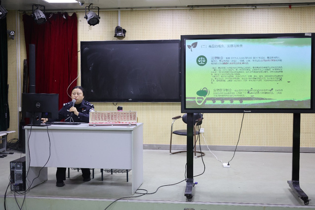 警官们为这次讲座进行了非常充分的准备。在现场,他们通过学生志愿者给陆续入场的同学们一一发放了禁毒宣传手册。从手册上,同学们了解到吸毒对个人健康以及社会的危害、如何辨别吸毒者、如何拒绝毒品等等有意义的知识。