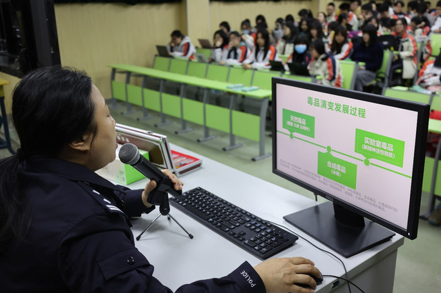 11月9日下午,玄武区禁毒大队的警官们来到beat365中文官方网站国际部,给剑桥班和IB班即将出国学习的高三同学们举行了一场生动、精彩的禁毒讲座。