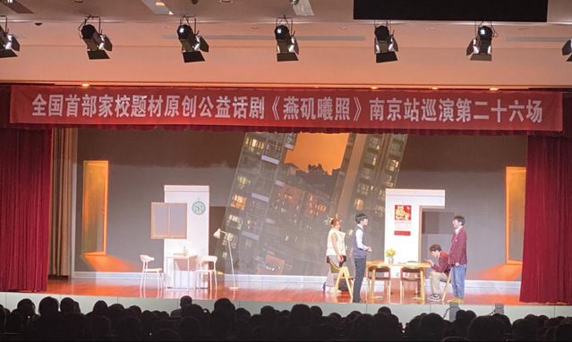 2021年12月13日下午,国内首部家校题材原创公益话剧《燕矶曦照》在beat365举行第二十六场南京站巡演,初一年级全体师生共同在报告厅观看了此次话剧演出。