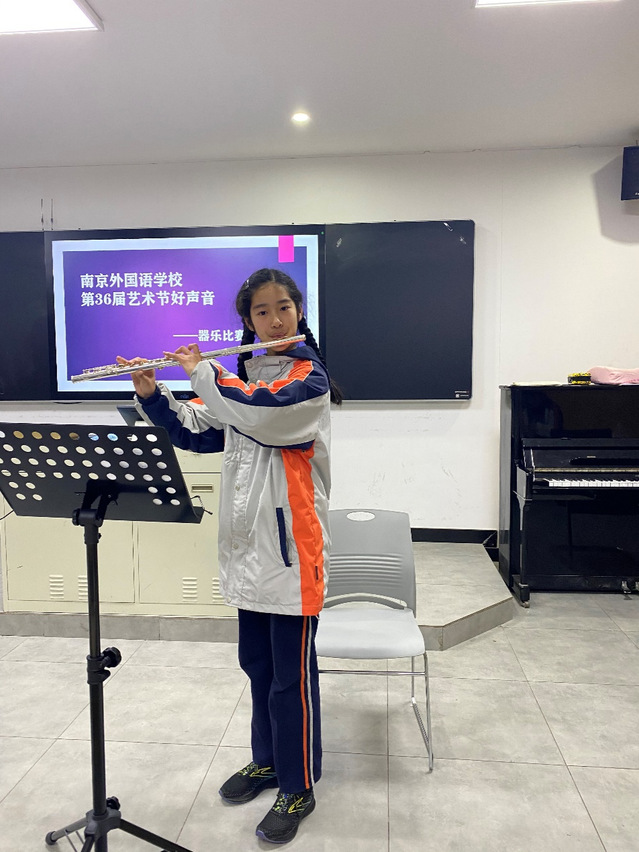 长笛是一件优雅的乐器,看这位初一年级亭亭玉立的女生,演奏《渔歌唱晚》真是一种享受。
