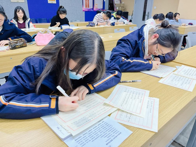 在本次现场书法大赛中,同学们毫无保留地展露了自己的书法技艺,让墨香浸润身心,书写骨子里的红色基因。