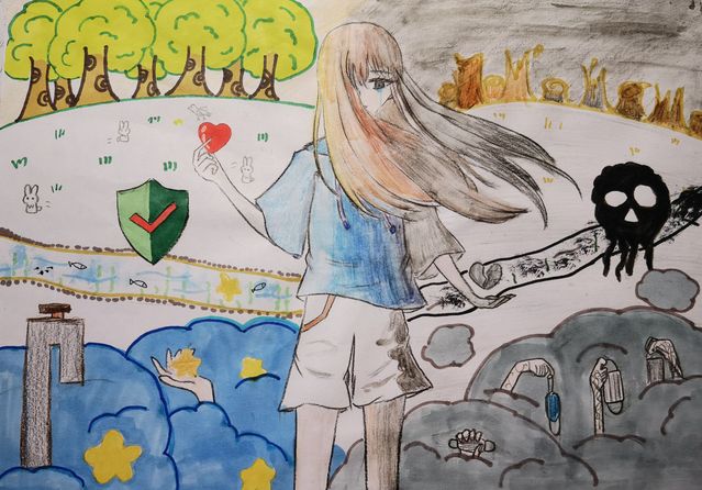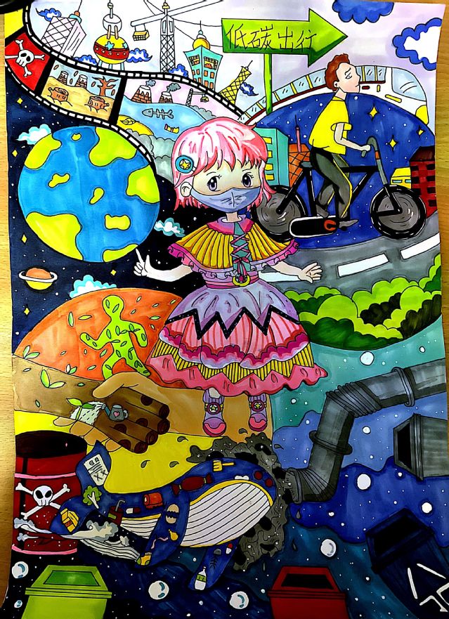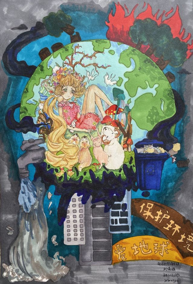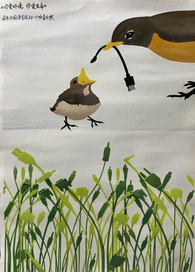 此外,同学们还积极参加了南京市中小学生“环境健康杯”征文绘画比赛。用自己的观察和笔触表达对自然和未来的关切,让构建人类命运共同体,实现可持续发展的理念贯穿心间。