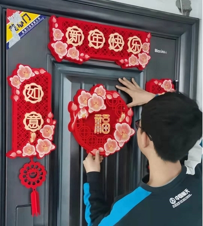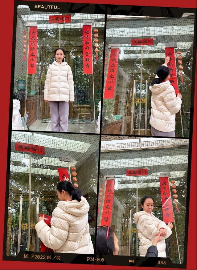 初高中同学都参与了“我们的节日·春节”主题活动。大家主动做清扫、包饺子、买(写)对联、贴窗花、挂灯笼、守岁、拜年,祭祖等等,与家人一起享受传统节日带来的快乐与温馨。陈子邯同学说:“我在大门上贴上了红彤彤的春联,春联上写着对来年美好光景的期盼,这是中国广大劳动人民的共同愿景,也蕴含了中华文明几千年来的文化素养。”除了亲自感受年味,还有的同学参观了春节相关的展览,如明孝陵博物馆推出的“人间烟火气——团团圆圆年夜饭”和“俚好·南京”当代泥印系列展等。参与的戴佳凝同学表示:“一个小时的线上展览和讲解,集趣味性和当代性于一体,加上自己对生活了14年的环境感悟,让我从另一个侧面对南京增加了一份了解,也让我第一次深切领略到古都南京独特的文化魅力,对家乡又增添了一份自豪和眷恋。”