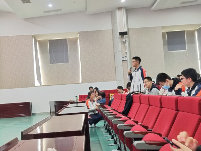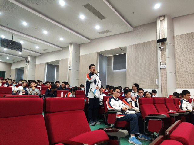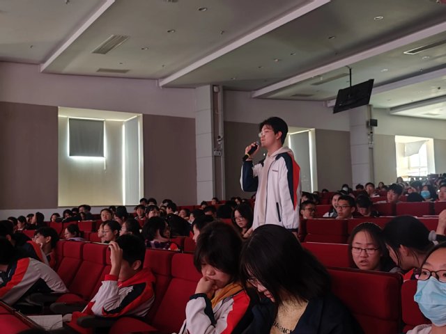 高二(2)班的顾杰瑞同学提问:艺术创作应该走向精英化,还是追求大众化?林老师回答:艺术创作应该保持先锋实验性探索性的同时,也不应该脱离生活,脱离大众,走入自说自话,故步自封的境地。