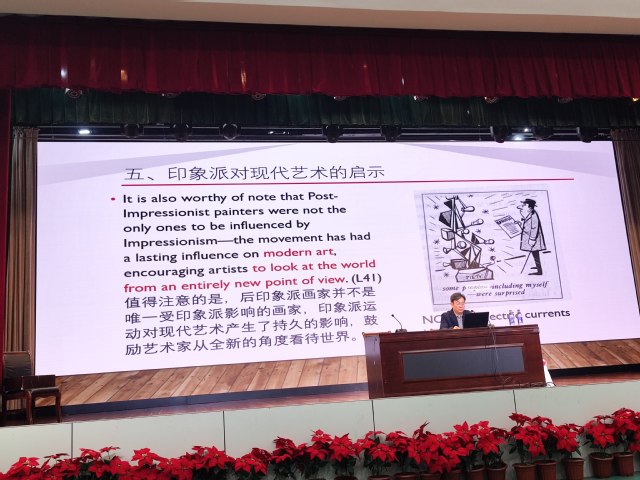 此次讲座内容充实、结构巧妙、言语幽默,加深了同学们对英语课文内涵的理解,是一次提升同学们的艺术修养和通识素养的有益尝试,受到了同学们的热烈欢迎。