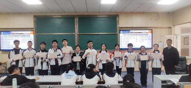 首先,会议对2021-2022学年的优秀学生辅导员进行了表彰,学生处副主任兼校团委书记王少林老师、少先队大队辅导员尤宁老师向他们颁发了获奖证书。