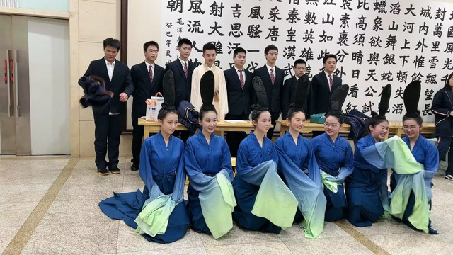 《千里江山图》出自一千年前的少年天才王希孟,集北宋以来水墨山水之大成,并将创作者的情感付诸创作之中,是宋代青绿山水画中具有突出艺术成就的代表作。2021年由周莉亚、韩真共同执导的《只此青绿》通过“展卷、问篆、唱丝、寻石、习笔、淬墨、入画”七个篇章,讲述了一位故宫青年研究员“穿越”回北宋,以“展卷人”视角“窥”见画家王希孟创作《千里江山图》的故事。其中表现千里江山的连绵起伏的“青绿腰”让我印象深刻,我便截取了一段齐舞作为节目的主体。由于学业紧张排练时间有限,我简化了王希孟入画的场景,并加入了一段齐诵衔接画作与当代中国。虽然开始的人员报名有些波折,但是在有限的时间里大家都努力排练,舞蹈的同学更是花费了好几个午休的时间学习。传承中华优秀传统文化应是当代青年人义不容辞的责任,通过本次艺术节节目的排练,同学们对山水画与宋朝的了解更加深入,一起演绎了源远流长的东方美学。古老的情感绵延在时光里,化作青绿,化作山水。翩若惊鸿间,是沉淀千年的意蕴,千里江山,不止青绿。青绿氤氲,山河无垠,心有丘壑,眼存山河!