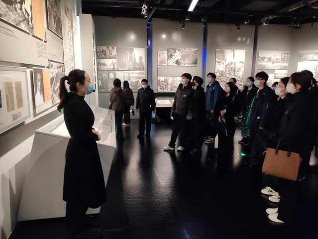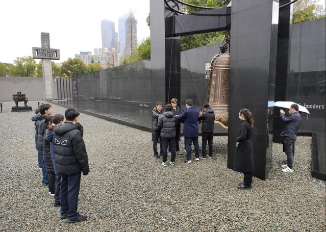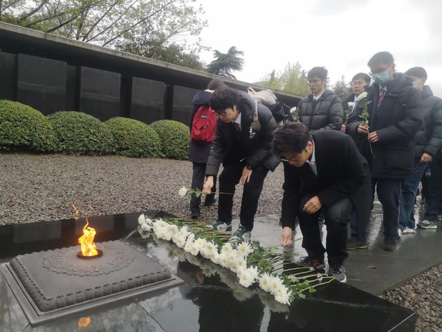 参观完展览,我们举行了献花仪式,以表哀思和纪念。在聆听幸存者家属叙说历史的过程中,我深切的感受到南京大屠杀从来不只是历史课本上的墨水字,它是实实在在祖辈和同胞流过的血、亲历的痛,是每一个令人颤抖的名字和每一段叫人夜不能寐的回忆。它从不只是发生在过去的一件事,86年来日本右翼分子一直妄图篡改,掩盖这段历史,我们每个人从现在到未来都应该勇敢发声。正如张纯如曾说过的“请你务必、务必、务必相信一个人的力量一个人可以令世界大为改观你是一个人,你可以改变数百万人的生活志存高远,不要限制住你的目光永远不要放弃你的梦想或理念。”