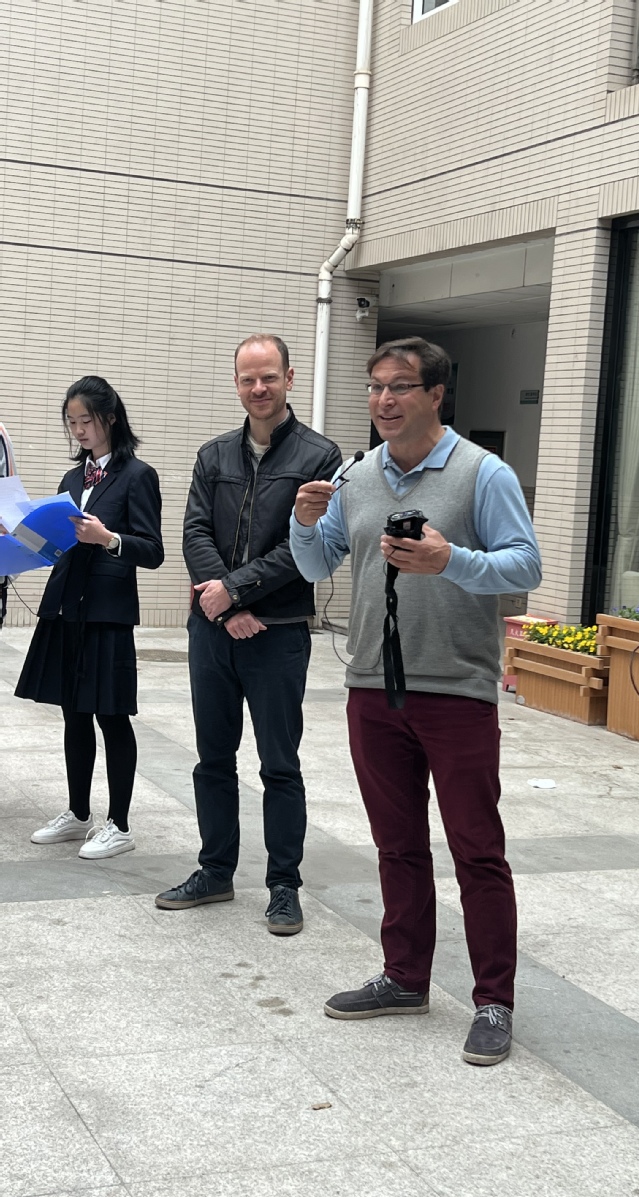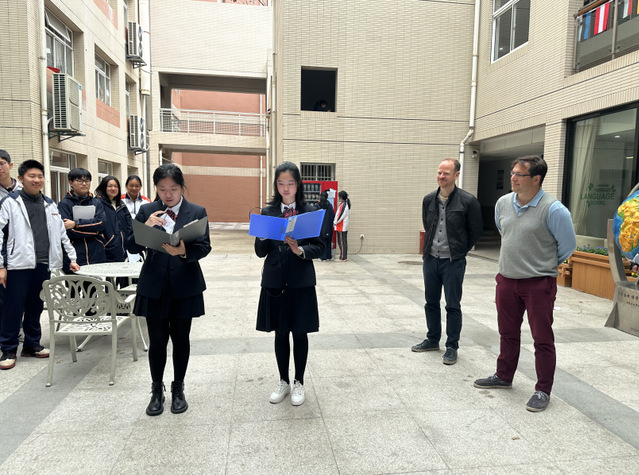 作为获奖画作的作者,来自初二的陈思憬同学与高一的姜涵悦同学向大家娓 娓道来自己的创作思路,她们的环保理念在同学中激起回响。