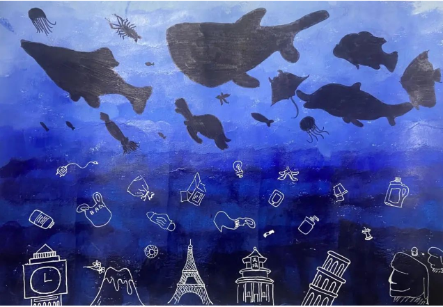 继2022“中法环境月”主题电影展之后,3月30日,“中法环境月”青少绘画展又 在南外举行。本次画展的主题为“蓝色星球”,学校师生在南京法语联盟校长David Couvidat先生以及南外艺术组组长曹启海老师的引领下畅游在艺术的蓝色海洋中。