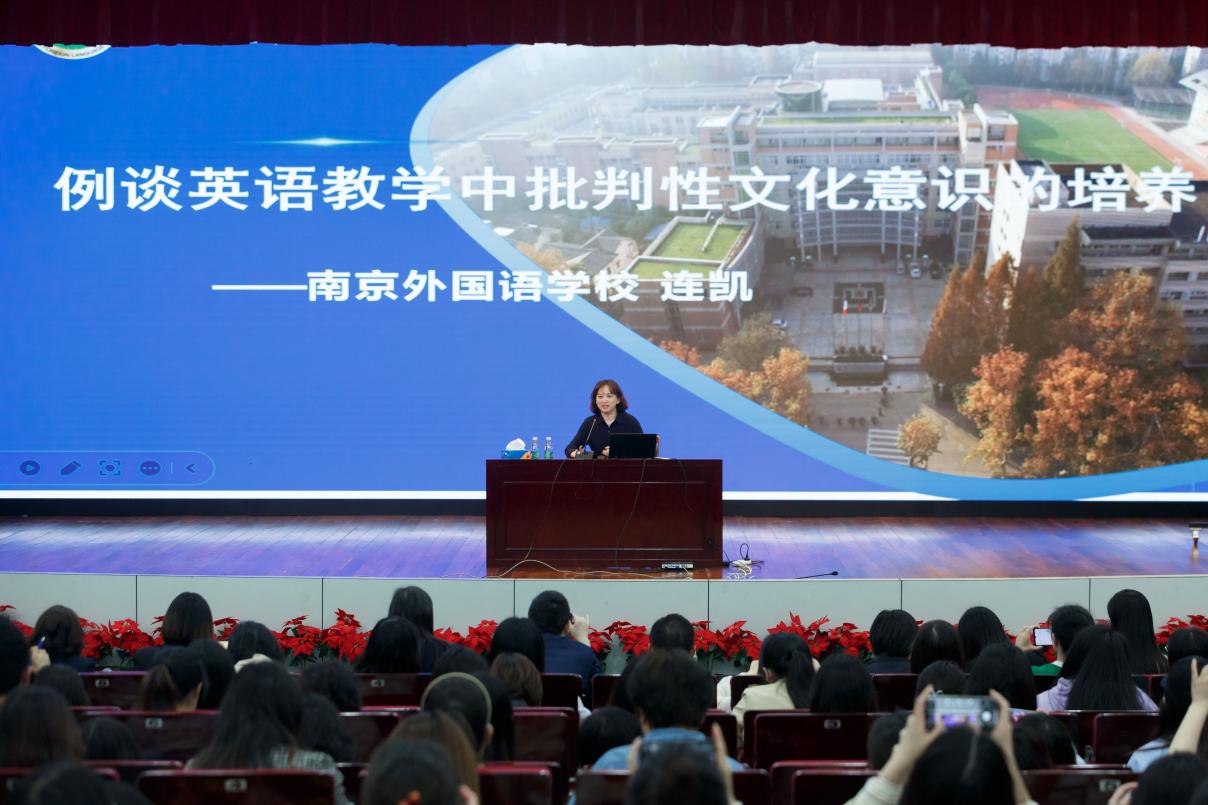 两节课后,beat365中文官方网站连凯副校长进行了题为《例谈英语教学中批判性文化意识的培养》的讲座分享。讲座从文化意识培养方面的常见问题入手,指出在日常文化教学中,老师们常常出现教学与培养目标不符,产出同质;教学与交际需要不符,情境失真;教学与学习规律不符,内容割裂等问题。在谈到如何改变这样的情况时,连校长介绍了Byram的教材文化内容评价项目,并以此进一步结合课标中有关“文化意识目标”的要求,通过案例,从广泛获得文化知识(审慎看待文化现象,提升文化感知敏感度)、深度理解文化内涵(客观评价文化价值,加强文化认知成熟度)、全面比较文化异同(合理推理文化根源,增强文化分析系统性)、理性汲取文化精华(自主调节文化知识,坚定优秀文化自信心)四个方面来阐述如何在英语教学中培养学生的批判性文化意识。