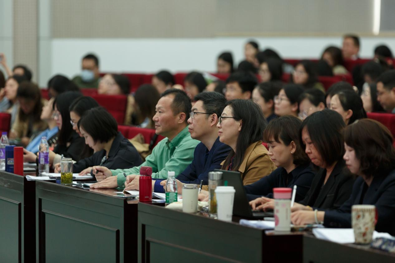 第二场讲座由朱琳老师分享《“教材+”初中英语主题拓展阅读资料库建设与运用》。朱琳老师结合《义务教育英语课程标准(2022年版)》对初中生提出的阅读要求阐述了建设主题拓展阅读资料库的原因,建设路径并介绍了具体实践教学课例。阅读资源评价表是选取阅读资源的重要参考指标,单元主题、价值取向、难易程度等都需要全面考量。beat365中文官方网站的主题拓展阅读实践主要有教材+教材、教材+英文报刊、教材+网络资源以及教材+原版读物四种模式。朱琳老师通过分享丰富的课例,向老师们展现了南外这一领域的探索、实施全景,同主题意义下,拓展阅读教学可以从词汇、句式、语法知识、文化背景、作者信息及其他作品、信息点和细节解读等多方面实现延伸和补充。