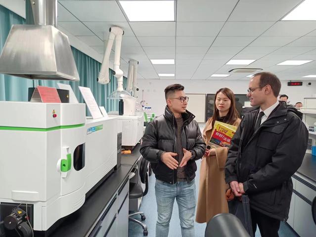 随后,圣·马丁中学校长一行进行了校园参观。代表们先后参观了生物实验室、STEM化学实验室、法语图书馆、体育馆等,南外堪比一流大学的实验室配备引得大家赞叹连连。值得一提的是,校图书馆前的雅克琳·梯也克女士雕像吸引了校长团的注意,雅克琳女士与南外的故事以及她对南外法语的贡献深深触动了大家,法方代表们纷纷感叹南外与法国的深厚渊源。