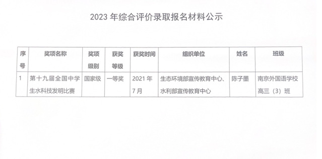 3.经本人申请,现将综合评价获奖情况申报材料公示如下: