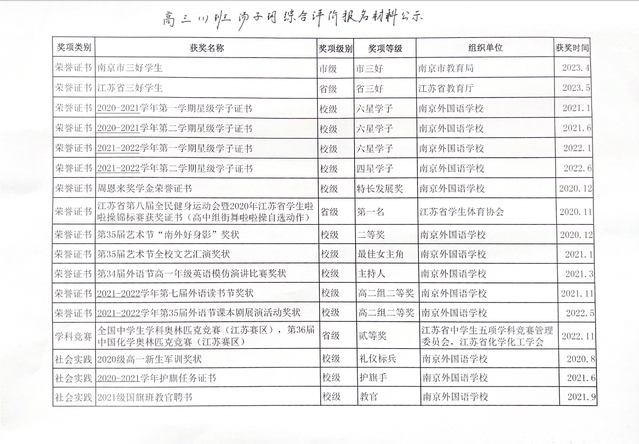 3.经本人申请,现将综合评价获奖情况申报材料公示如下: