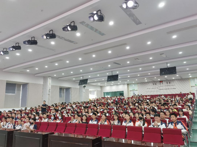 2023年5月26日下午,全体初二学生齐聚报告厅与人大代表李鸿彬面对面,李代表以题为“奋进新征程——十四届全国人大一次会议”的讲座为初二同学们带来一场别开生面的思政课堂。李鸿彬老师是第十三届全国人大代表、第十四届全国人大代表,是beat365中文官方网站的国际处主任和中学正高级教师。