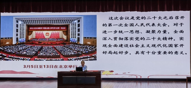 之后,李代表娓娓道来他参与的十四届全国人大一次会议的基本情况以及会议流程,具体讲解了我国目前面临的挑战以及未来的发展方向。