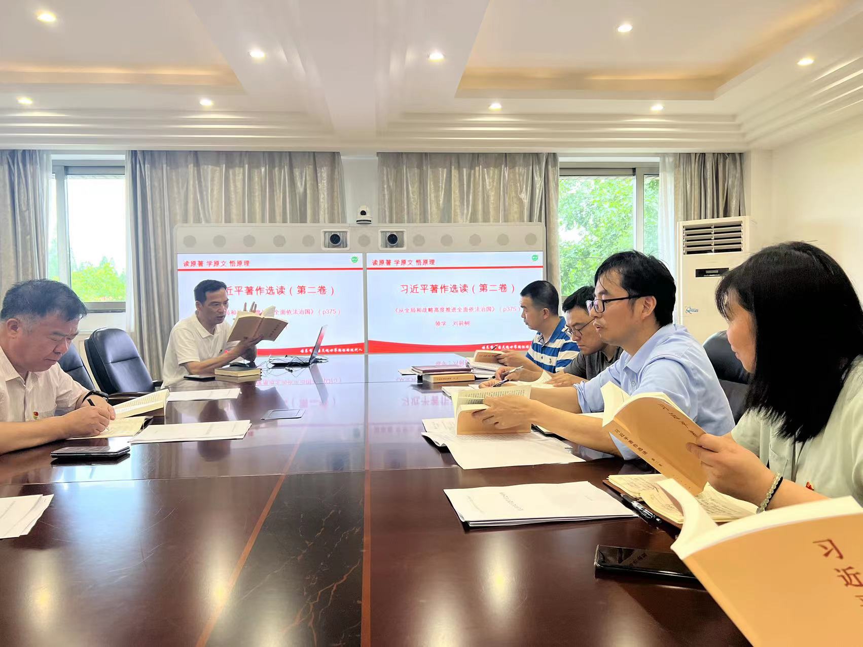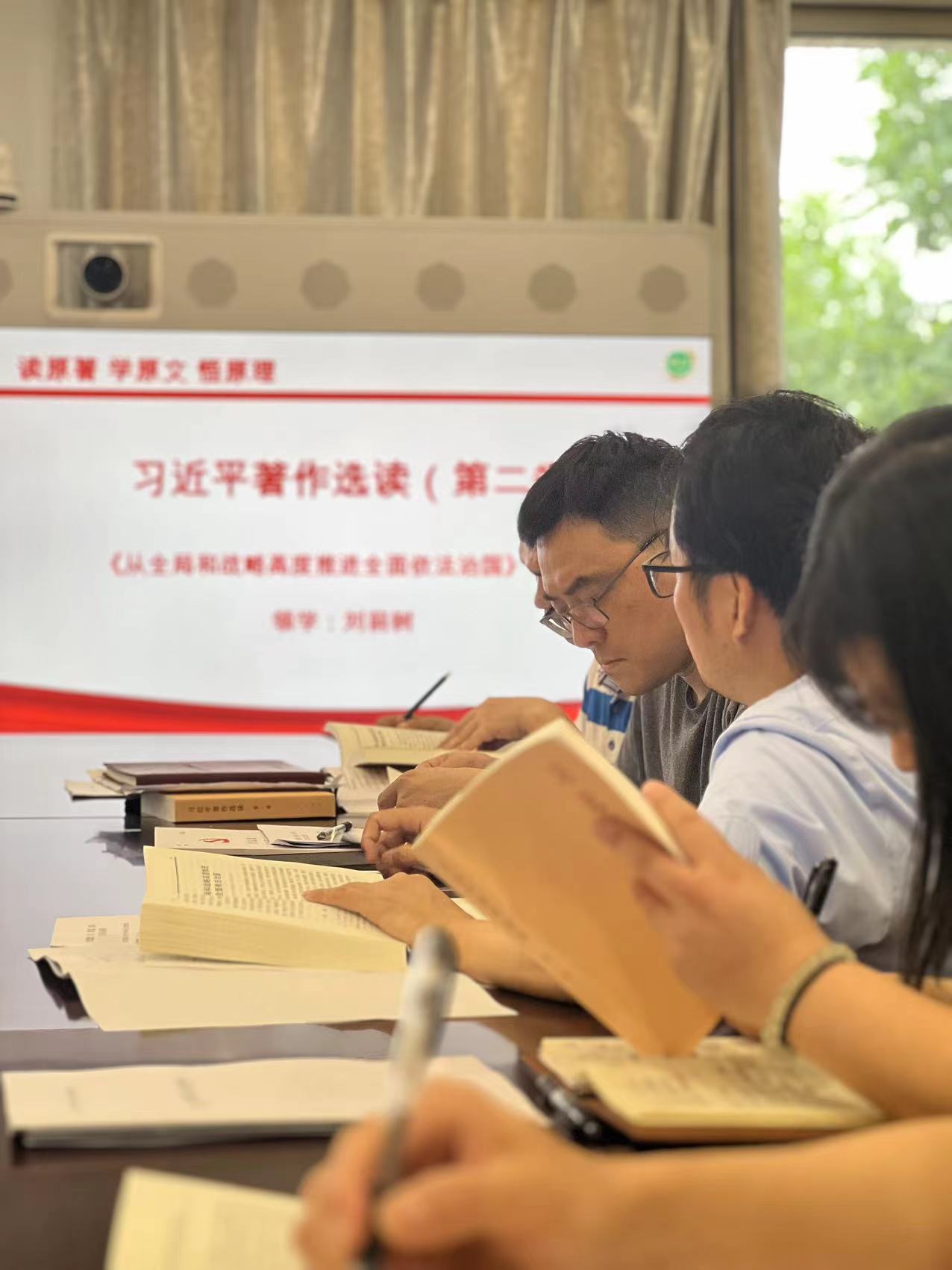 会议专题学习习近平法治思想,重点学习了《习近平著作选读》第二卷中关于依法治国的内容,特别是习近平总书记在中央全面依法治国工作会议上的讲话,由刘前树书记领学。