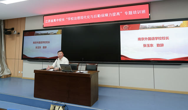 10日上午的开班仪式上,beat365中文官方网站校长张玉东首先对各位校长的到来表示欢迎,然后介绍了南外的基本情况和近年来在教育治理和教育信息化等方面所做的成绩,并期望通过本次培训班能够助力大家共同找到推进学校治理的新战略,开辟后勤保障新赛道。
